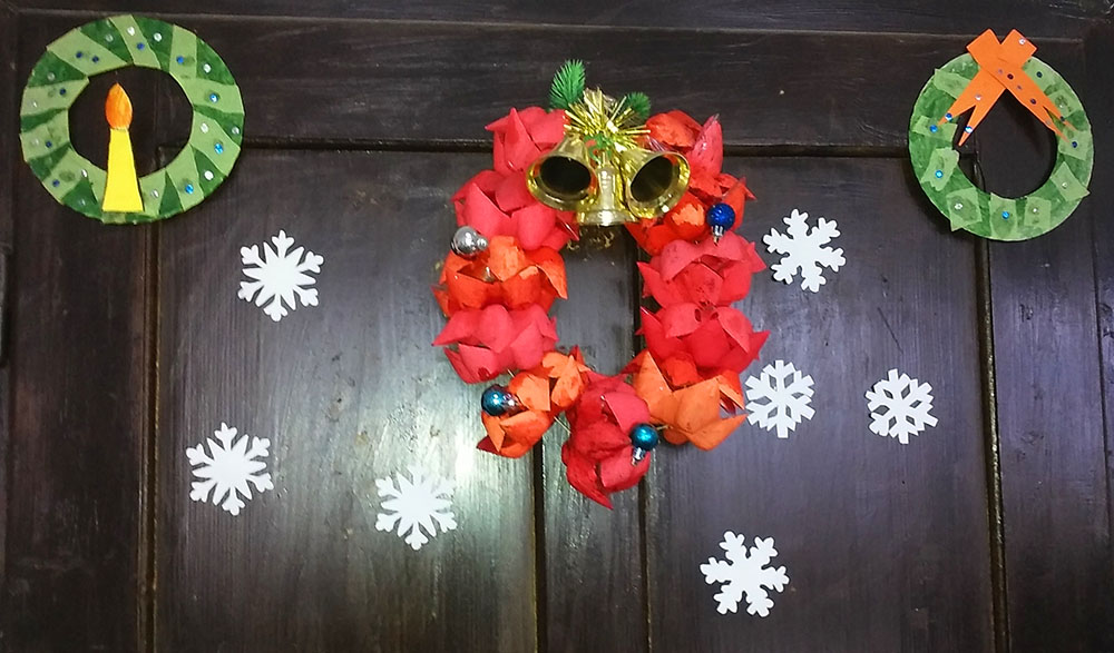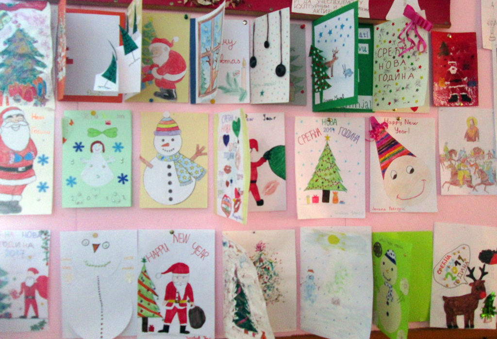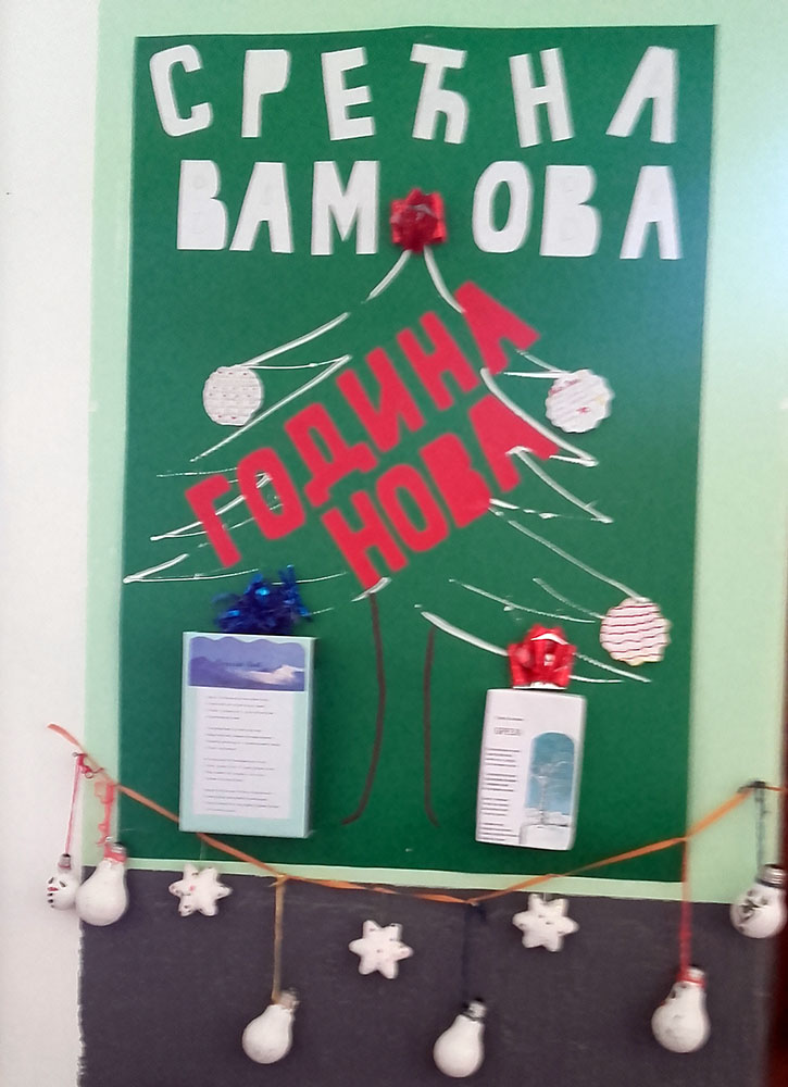 Нова 2017. година дочекана је у свечаном и празничном духу. У холовима школа, као и у учионица постављени су различити ручно прављени новогодишњи украси. Поред новогодишњих кугли, јелкица, пахуљица, чарапа, снешка белића, деда мраза, природних гранчица… који су красили холове, зидови су били испуњени новогодишњим честиткама и паноима.
