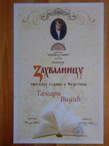 Велика честитка нашој ученици Тамари Видић, која је добила захвалницу као читалац године у Чајетини!