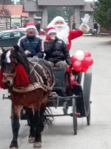 Деда Мраз је стигао на коњима и обрадовао децу празничним поклонима, док су се најмлађи забављали уз наступ аниматора на штулама, зимских вила и друге анимиране садржаје