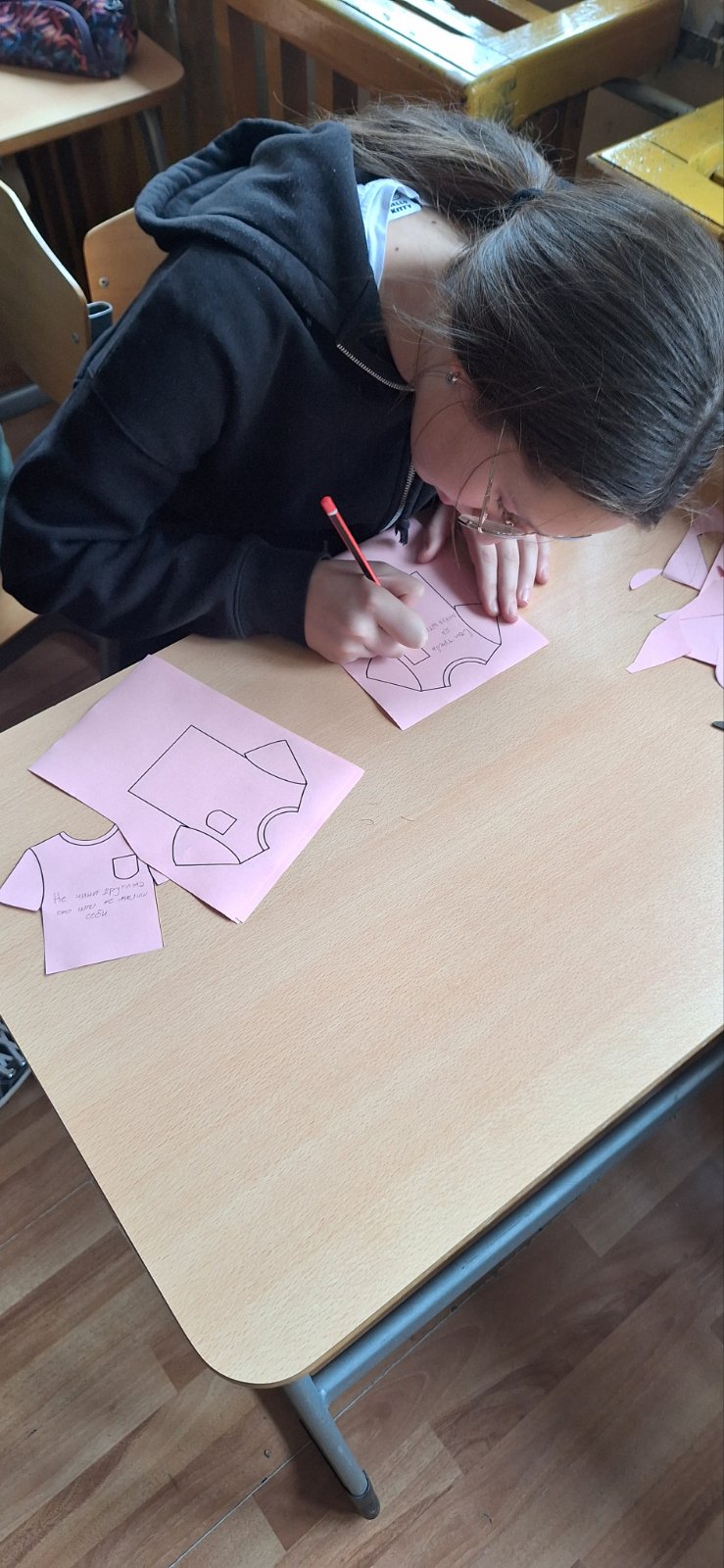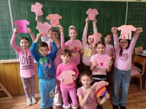 Ученици су носили розе мајице као симбол подршке жртвама вршњачког насиља, а кроз радионице, разговоре и креативне активности, заједно смо промовисали поруку да је школа место сигурности и узајамног поштовања.